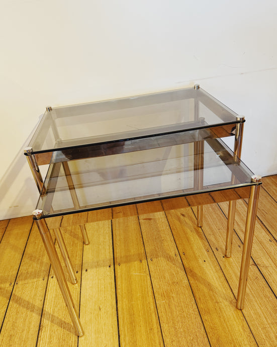 1970s HEAVY CHROME / Nesting Tables w/Bronze Fumé Glass