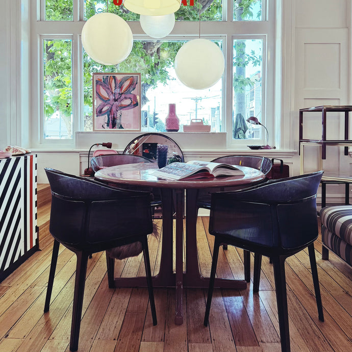 FANTASY #441 / Custom High Gloss Lacquered Dining Table in Aubergine