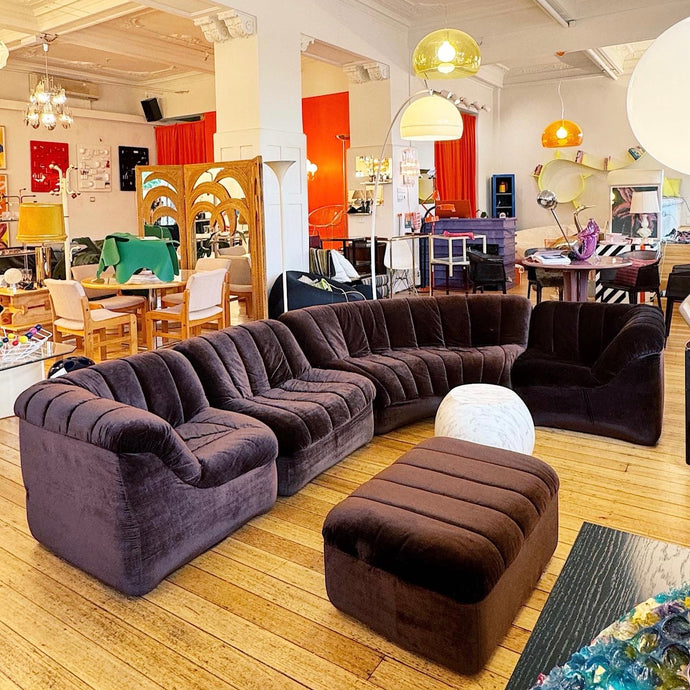 FEATHERSTON / 1970s Numero VII Dark Chocolate Torte Sofa Setting + Ottoman