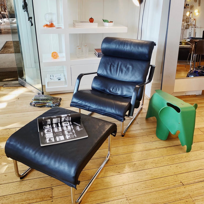 YRJÖ KUKKAPURO / 1970’s Remmi Black Leather Lounge chair + Ottoman