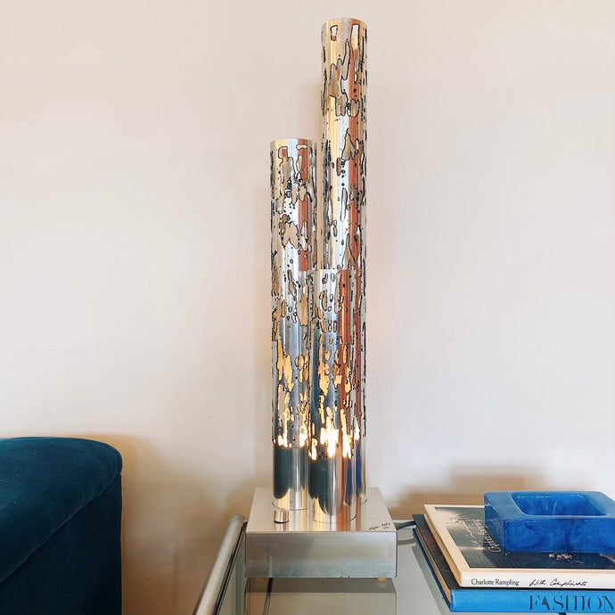 STEPHEN DALY / Brutalist Chrome Tri Column Lamp