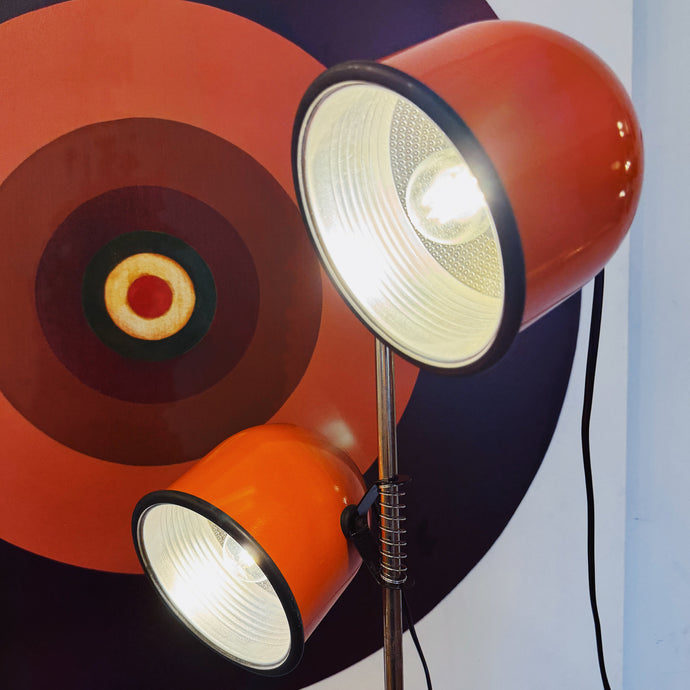 VINTAGE / Dual Headed Cloche Floor Lamp - Orange