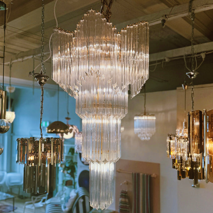VENINI / Vintage Quadriedri 4 Tier Glass Chandelier