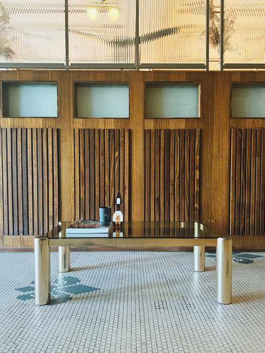 VINTAGE / Gold w/Bronze Fumé Glass Top