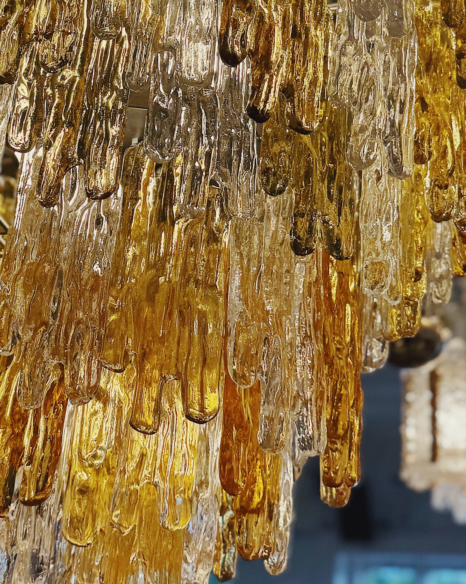 In 1881, Julius August Kalmar founded Kalmar, a Viennese company that produced handcrafted objects of cast bronze. Kalmar developed a fine reputation and exhibited internationally often, but it was Kalmar’s son, Julius Theodor (J.T.) Kalmar, who took over in 1913 and made the company shine with its modernist lighting. The 1960s saw Kalmar’s popularity grow, thanks in part to the success of more decorative pieces like the ice-glass fixtures created with Austrian sculptor Karl Gruber.