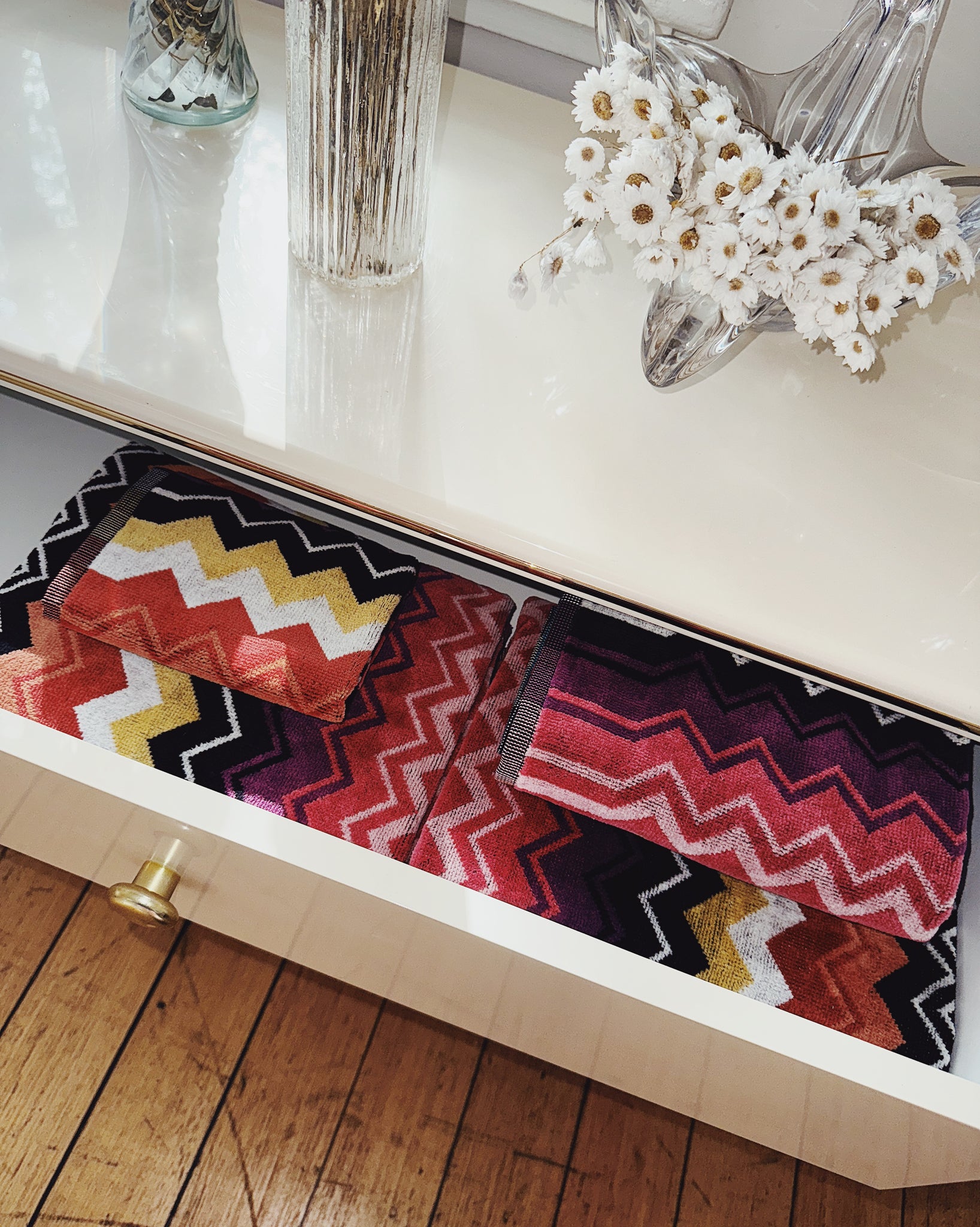 A heavy duty high gloss post modern dresser made in Australia with the marking MOEBEL WERKE. Tracked drawers, gold/brass detailing & handles. This piece is in excellent condition and requires two person team for delivery.