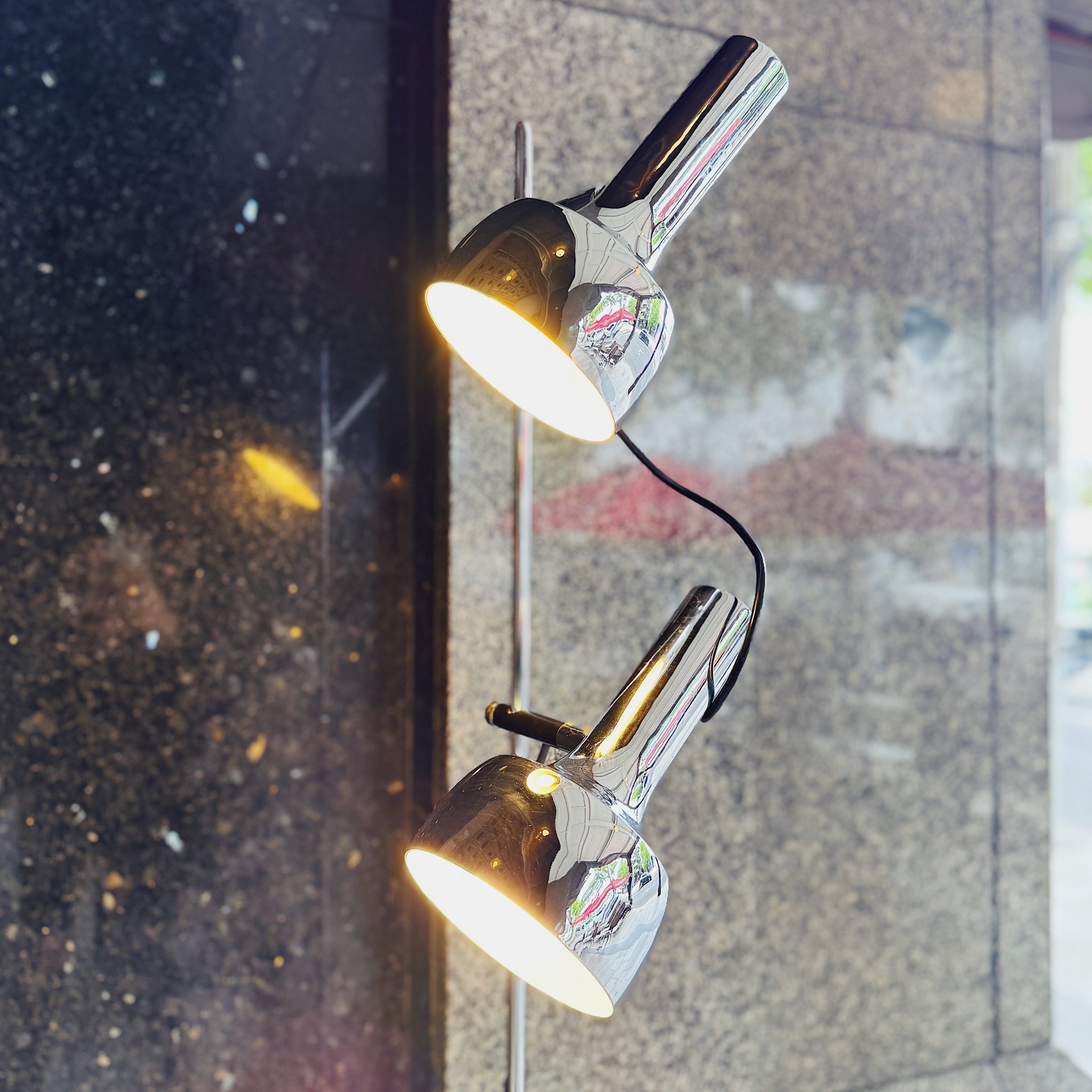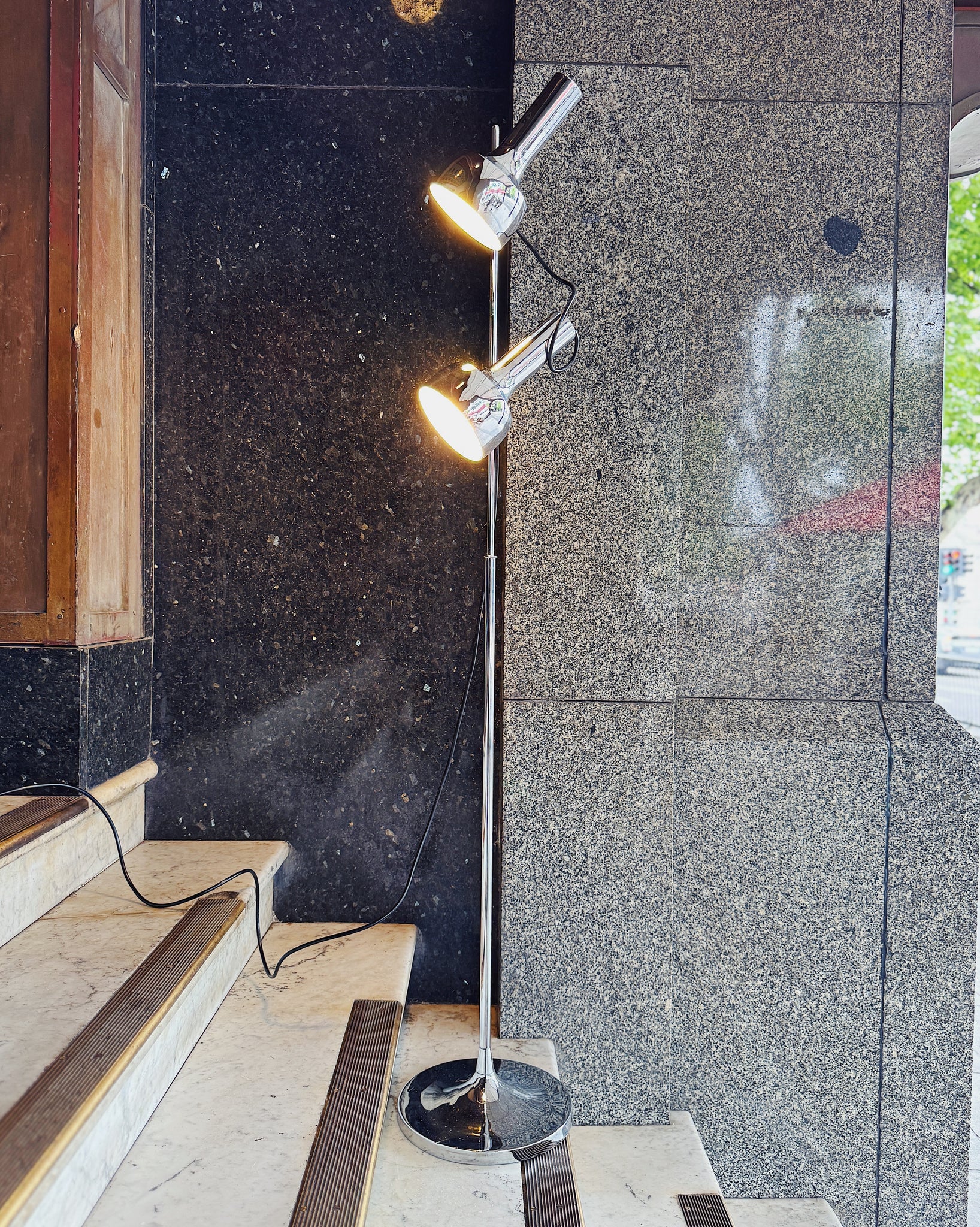 Rare 1960s tulip base Oslo Australia mid century dual head floor lamp. Original markings. Both lamp heads are adjustable to face in all directions and feature individual on/off switches on each lamp head. An iconic Scandinavian design with Australian craftsmanship. Features black cord. In incredible condition.