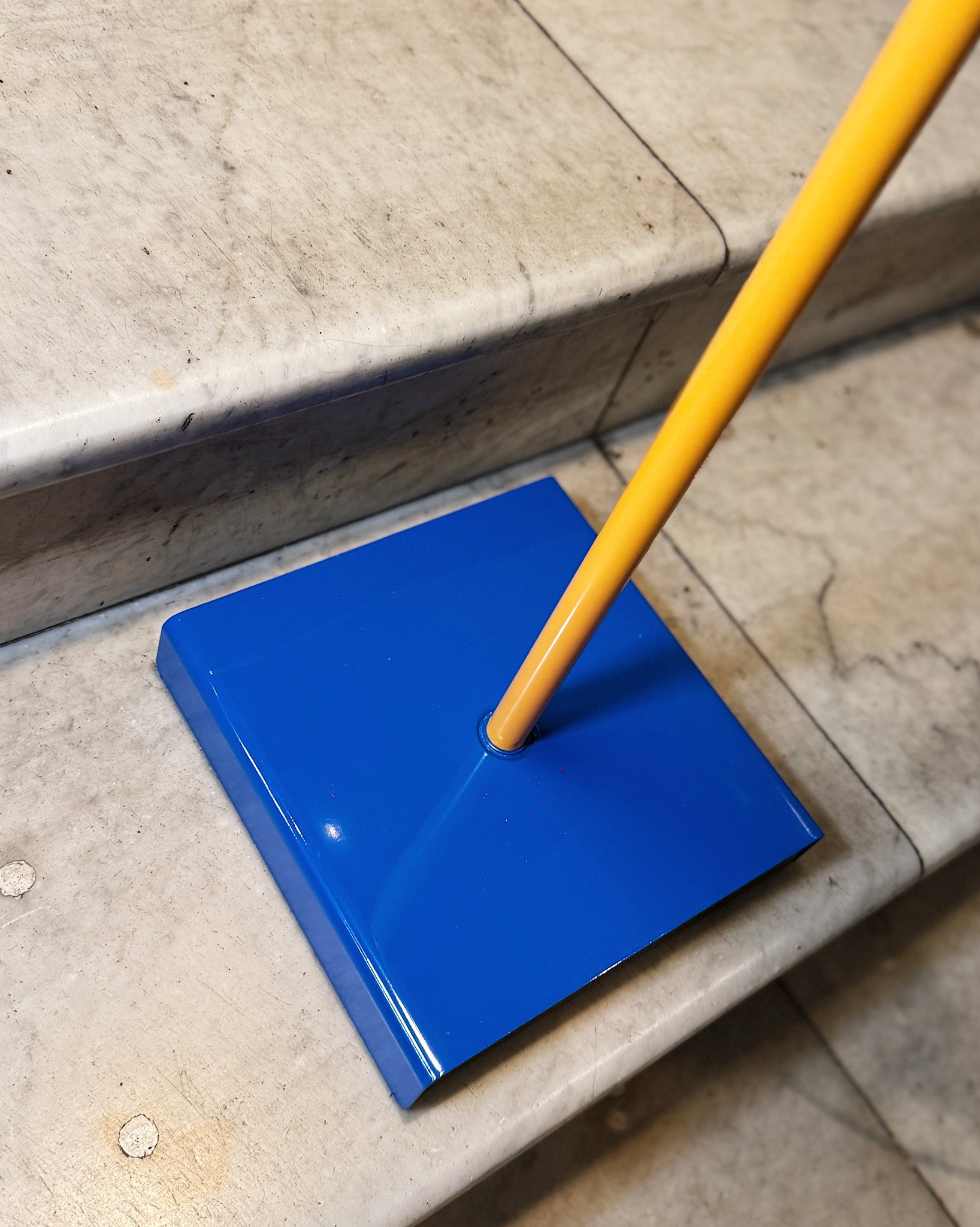 This lamp has been fully refurbished with brand new paint colours chosen by us in the manner of Piet Mondrian. Electric Blue, Burgundy Red, Yolk Yellow and white with black cord.